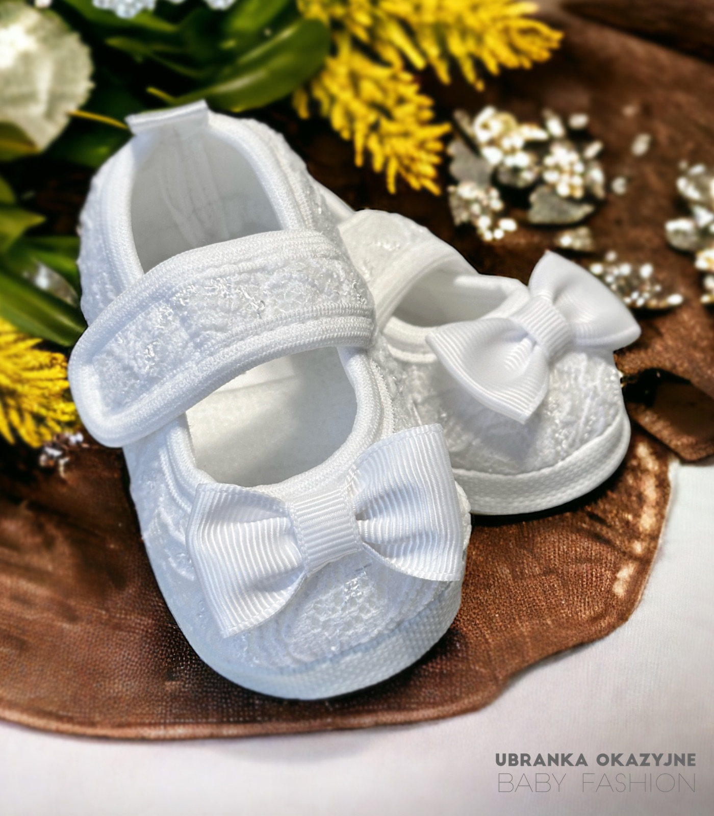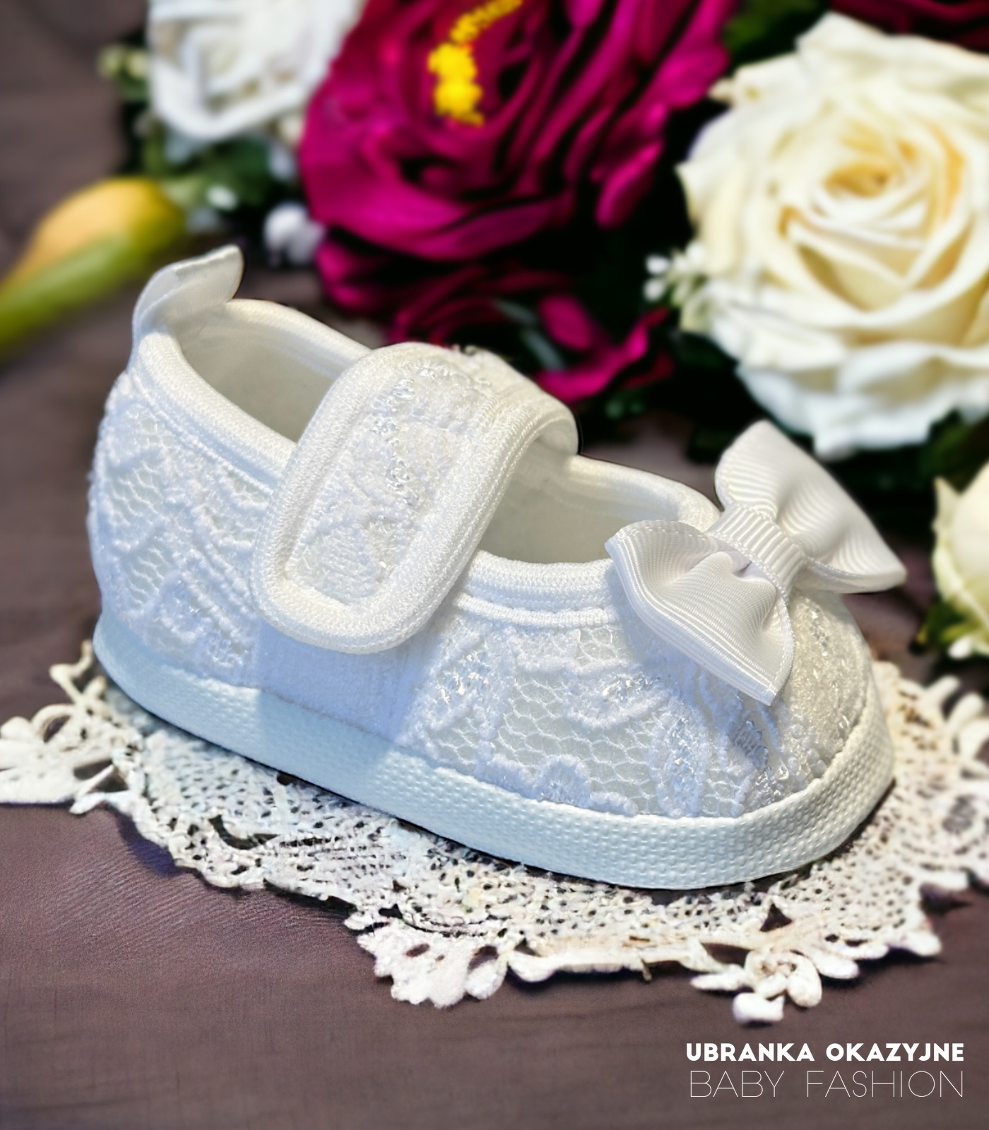 Szukasz wyjątkowych bucików dla swojej małej księżniczki na dzień chrztu? Nasze białe koronkowe balerinki są doskonałym wyborem na tę wyjątkową okazję. Delikatna koronka oraz urocza biała kokardka nadają im niepowtarzalnego uroku, a zarazem elegancji.