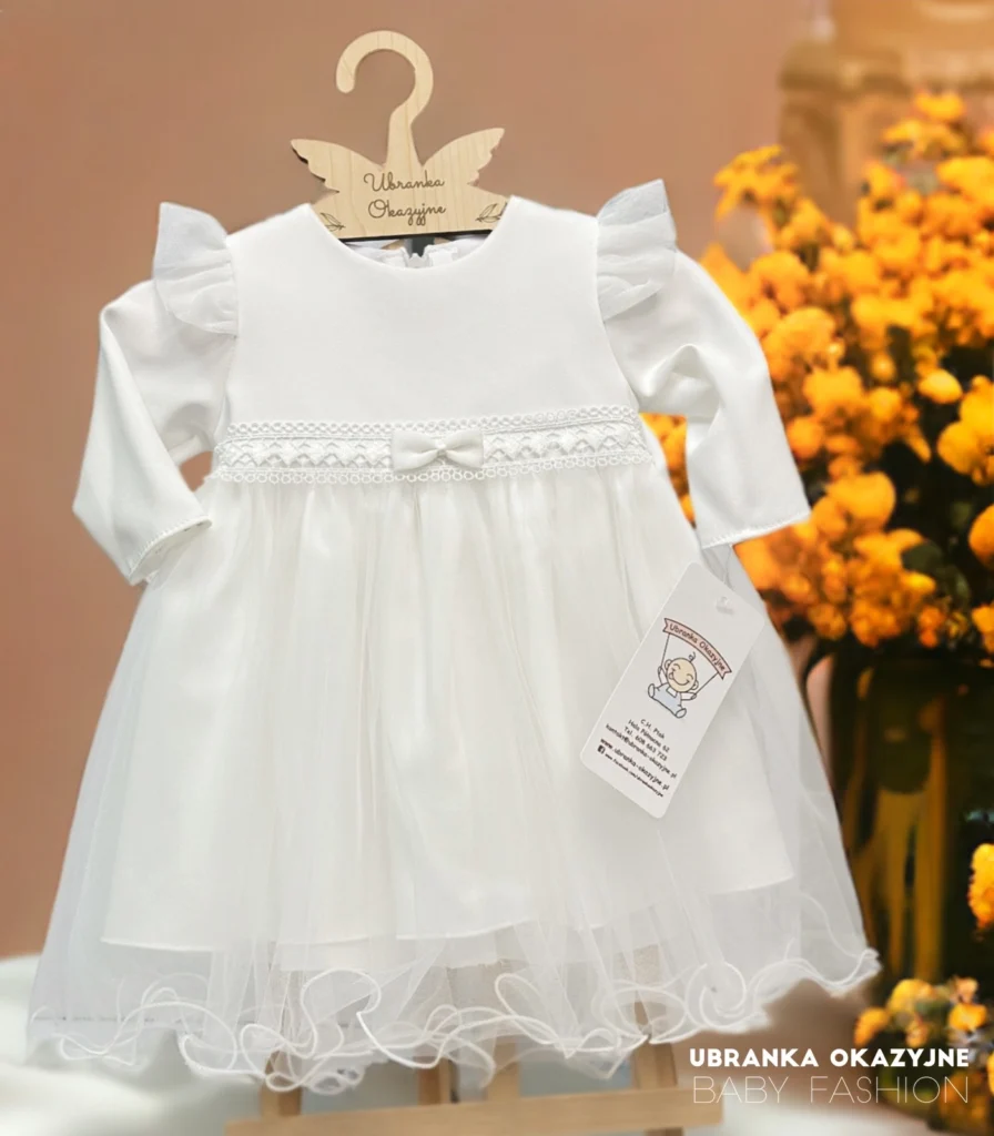 Nasze urocze ecru balerinki dla niemowląt to idealny dodatek do sukienki na chrzest. Wykonane z miękkiego materiału, te buciki typu niechodki zapewniają wygodę i elegancję dla delikatnych stópek małej dziewczynki. Balerinki są zawiązywane na tasiemki, co zapewnia łatwe zakładanie i pewne trzymanie na nóżce dziecka. To nie tylko modny dodatek, ale także praktyczny wybór dla małych dziewczynek. Zapewnij swojej małej księżniczce wyjątkowy wygląd z naszymi uroczymi białymi balerinkami.