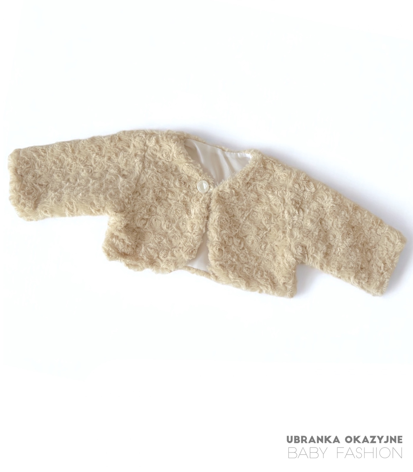 Zadbaj o piękny wygląd i ciepło swojego dziecka w dniu Chrztu Świętego. Zamów beżowe bolerko już dziś!