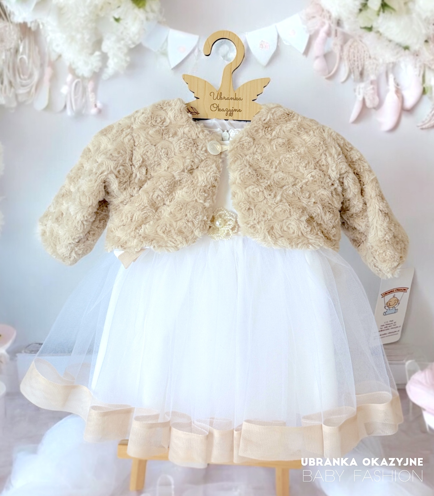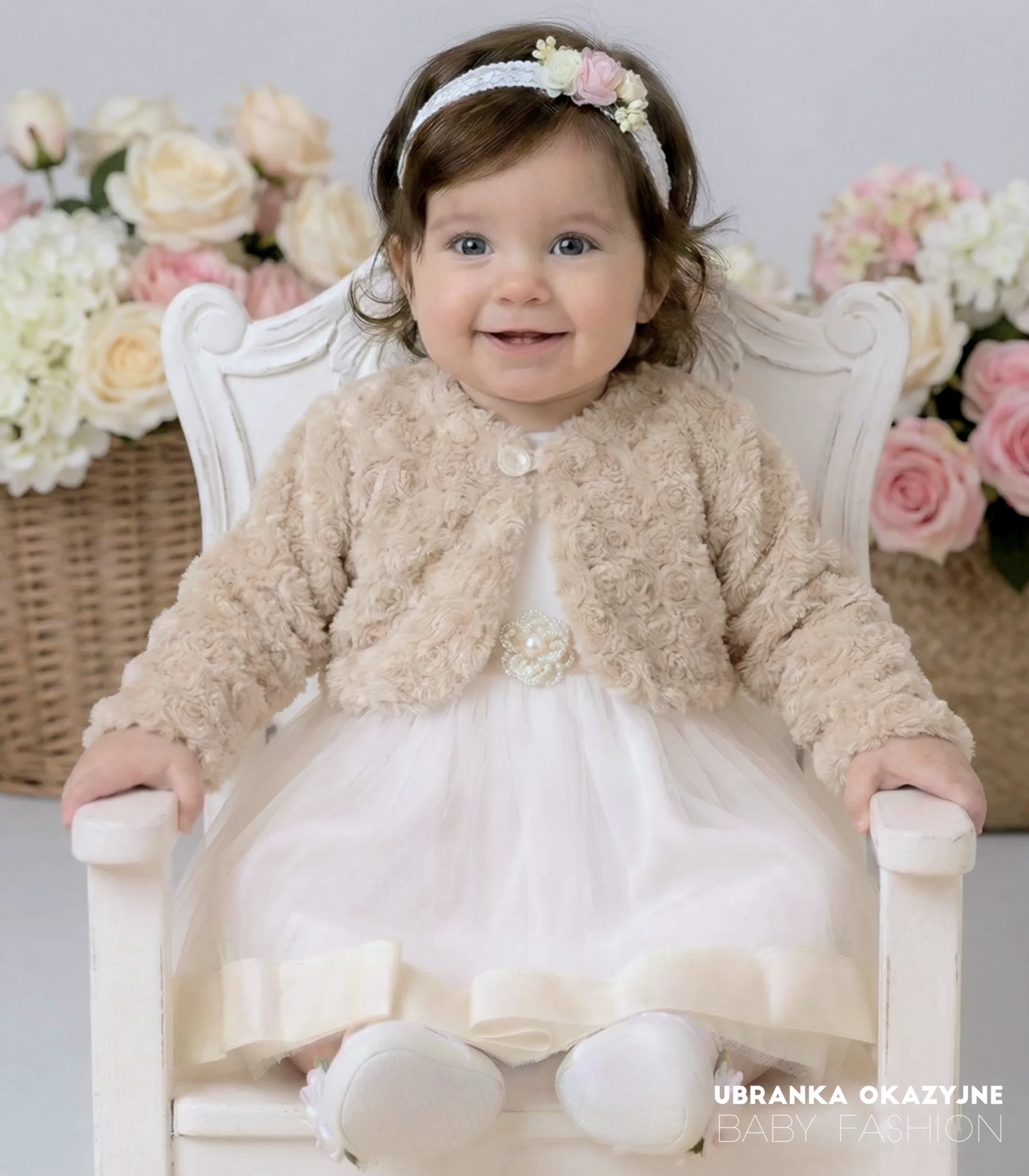 Szukasz idealnego dopełnienia stylizacji na Chrzest Święty dla swojej córeczki? Nasze beżowe bolerko futerkowe to połączenie elegancji, ciepła i wygody, które sprawi, że w tym wyjątkowym dniu Twoja Mała Księżniczka będzie wyglądać zjawiskowo i czuć się komfortowo.