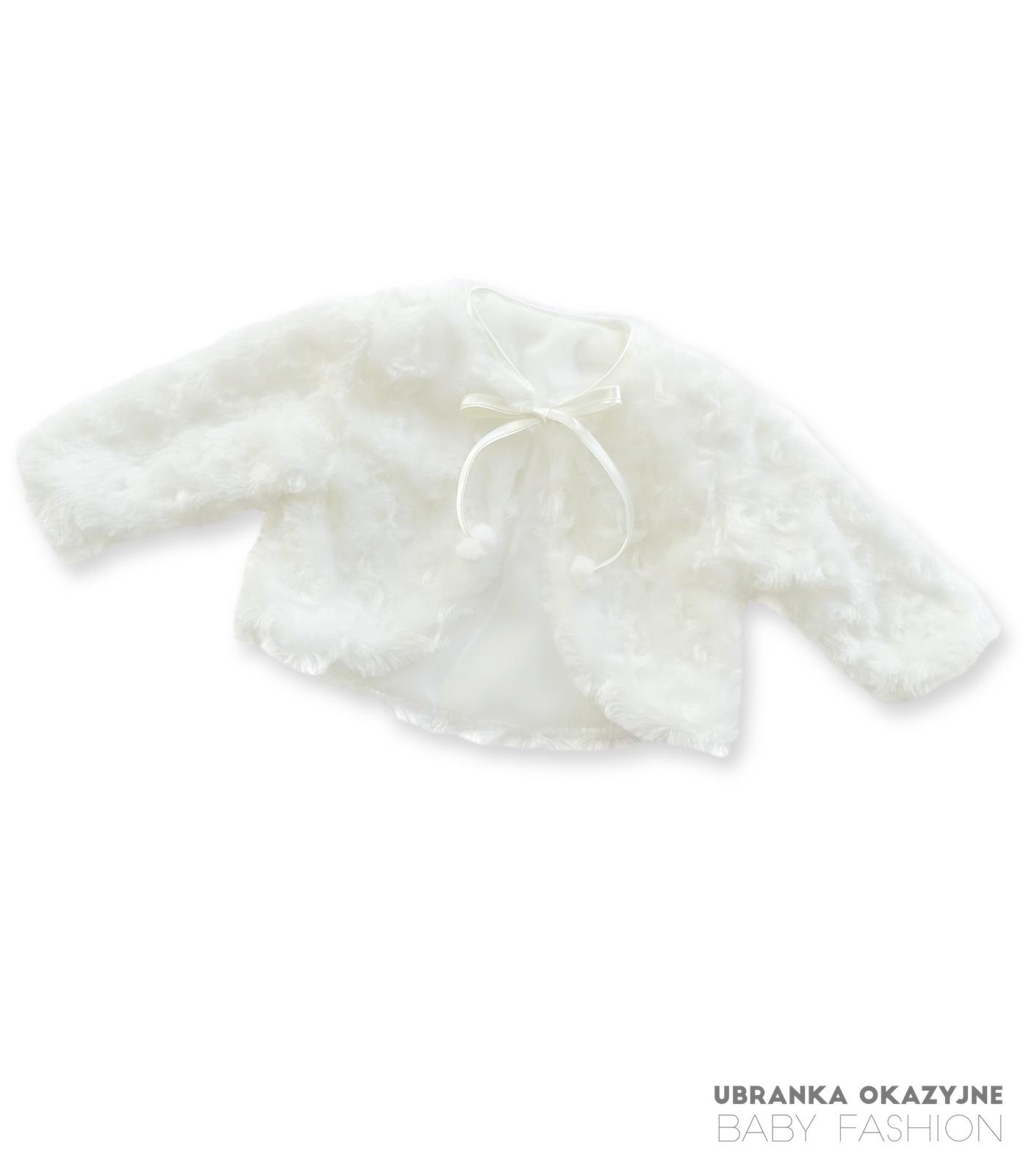 Bolerko Futerko Ecru – Idealne Okrycie Wierzchnie do Chrztu i na Wielkie Wyjścia