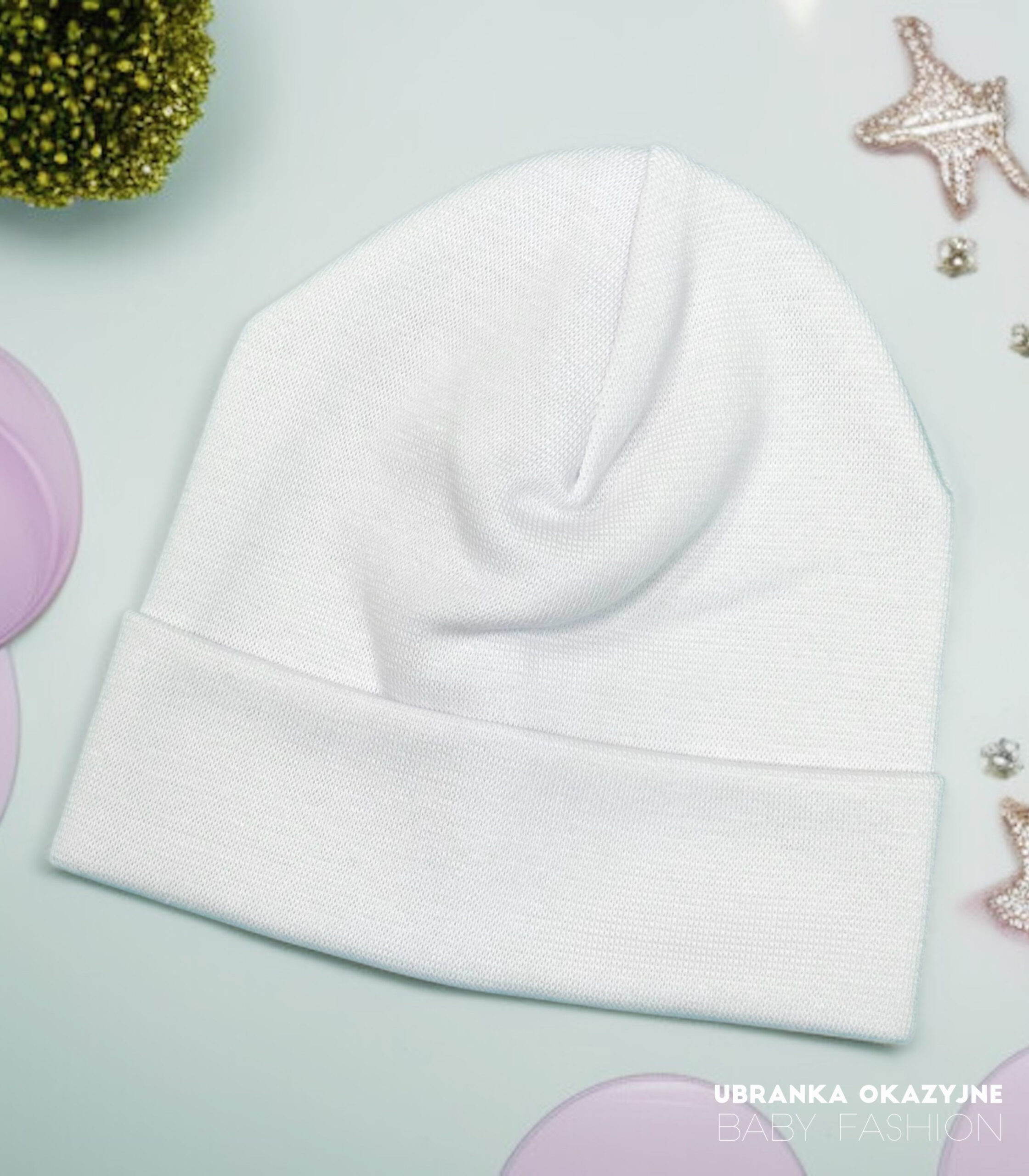 Ta biała czapeczka typu smerfetka to idealny dodatek do garderoby Twojego dziecka. Wykonana z miękkiej podwójnej bawełny, zapewni komfort i ochronę przed chłodem podczas zimnych dni.