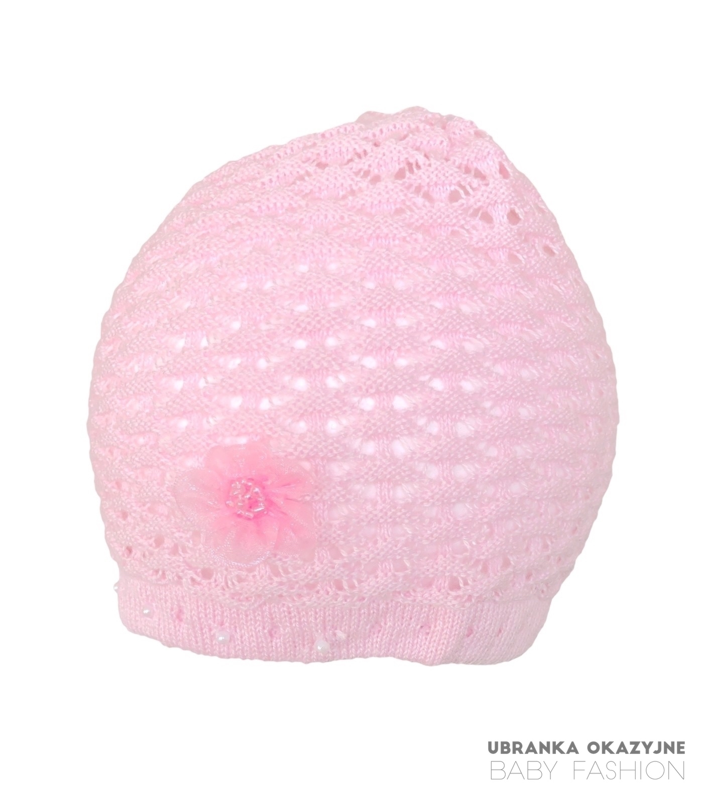 Elegancka Różowa Czapka Ażurowa do Chrztu dla Dziewczynki (0-8 mies.) – Produkt Polski