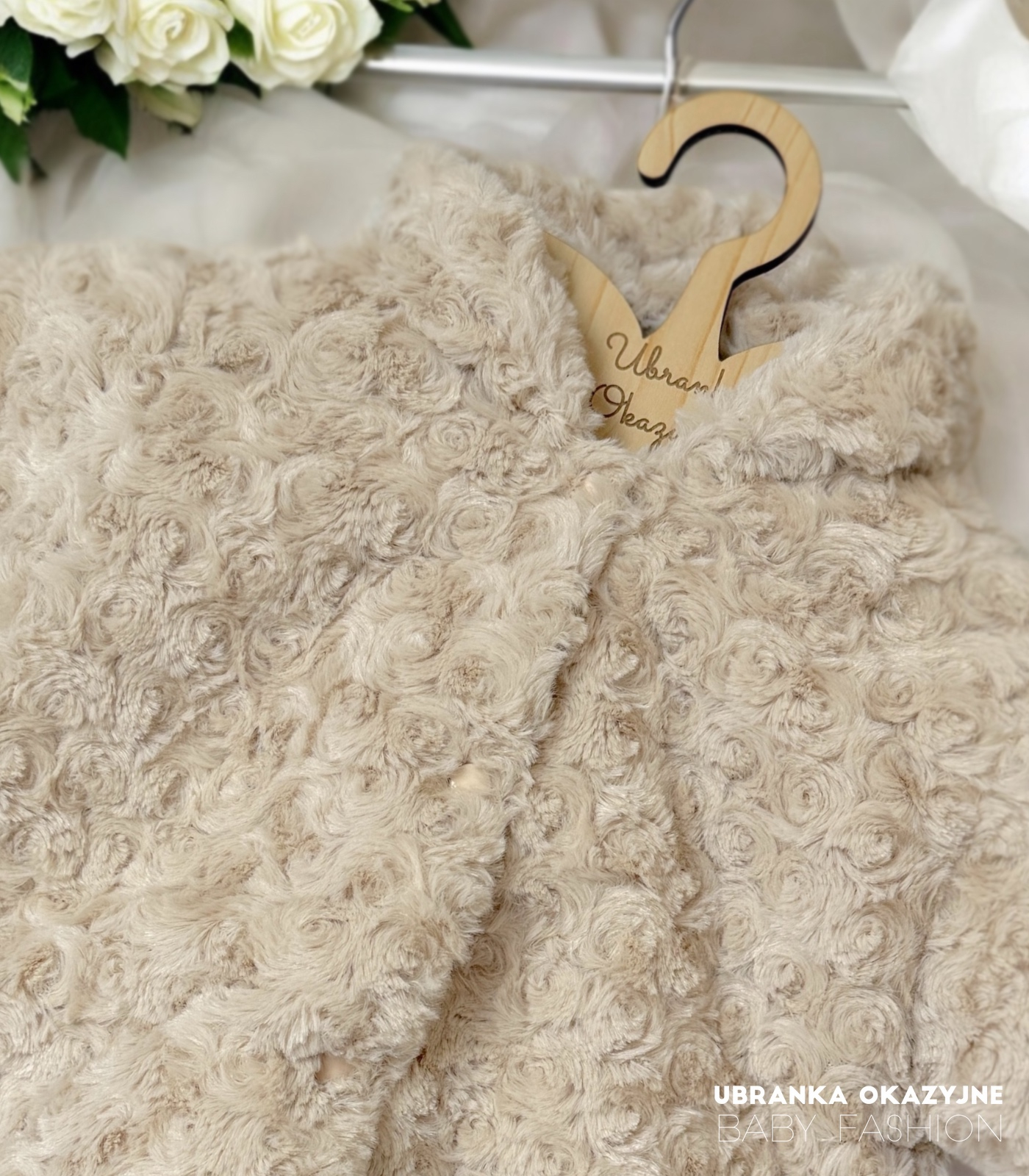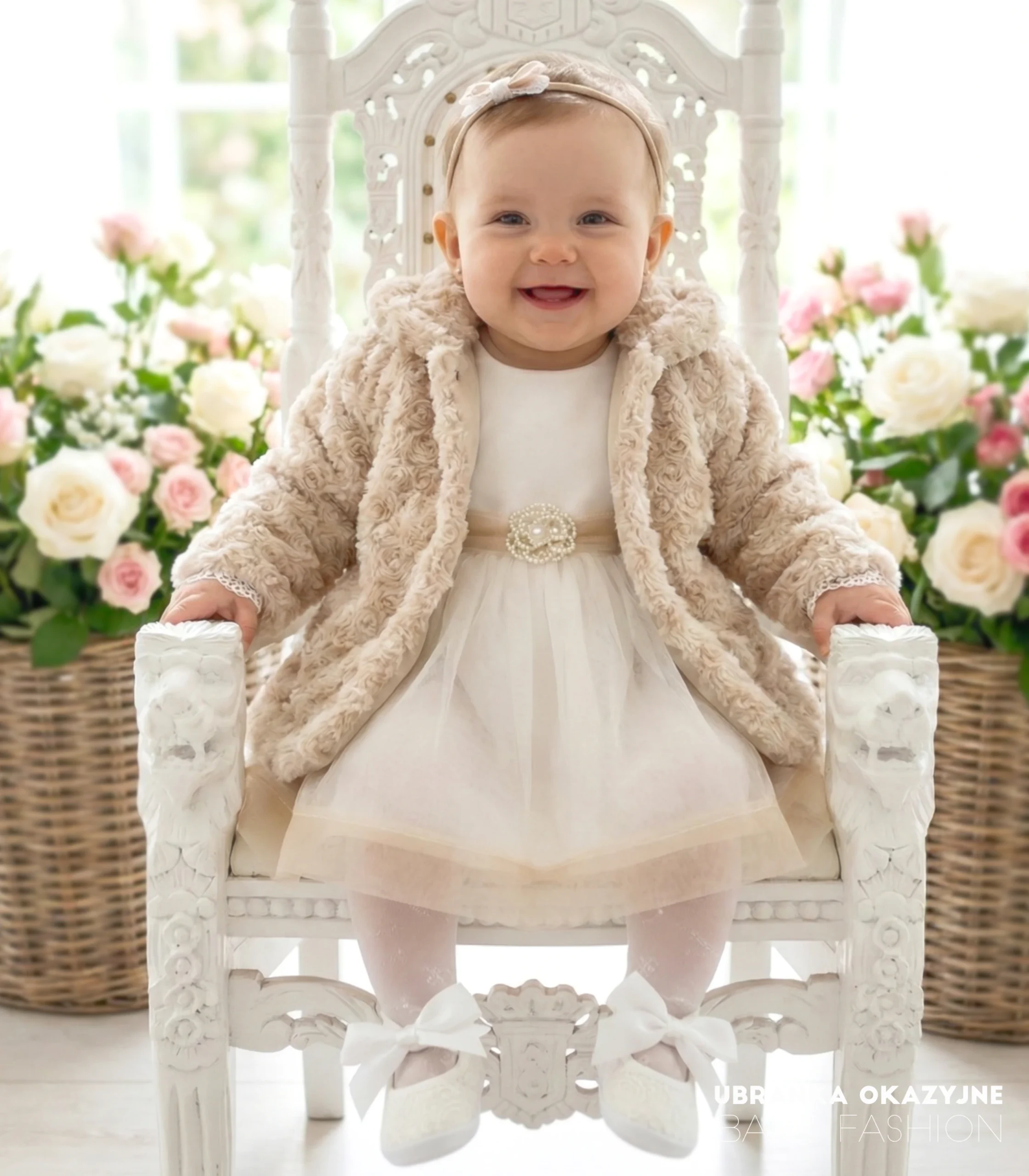 Eleganckie beżowe futerko do chrztu dla dziewczynki