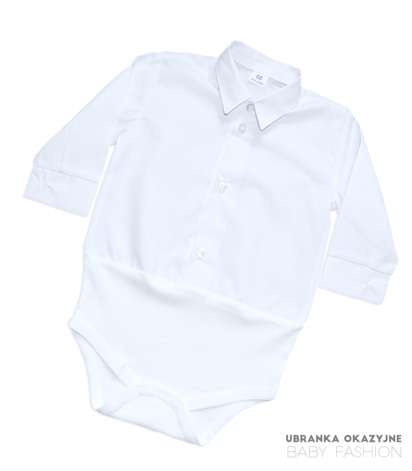 – Białe koszulo-body z długim rękawem.