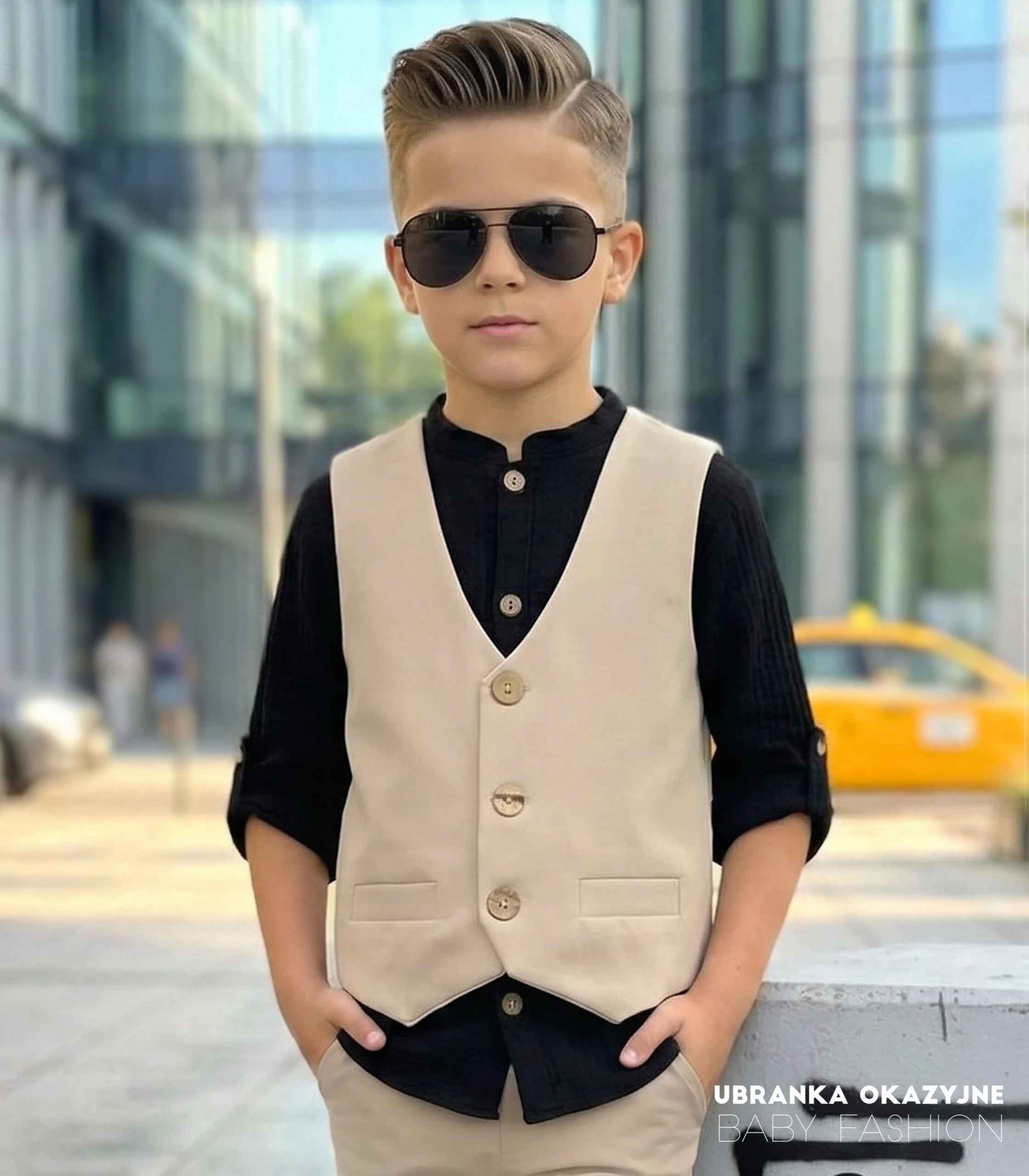 Stylowa kamizelka dla chłopca w kolorze beżowym – elegancki wybór na wyjątkowe okazje. Zapinana na drewniane guziczki, wykonana z dbałością o detale przez polskiego producenta. Idealnie sprawdzi się na wesela, święta i inne uroczystości. Dostępna w rozmiarach od 92 do 134.