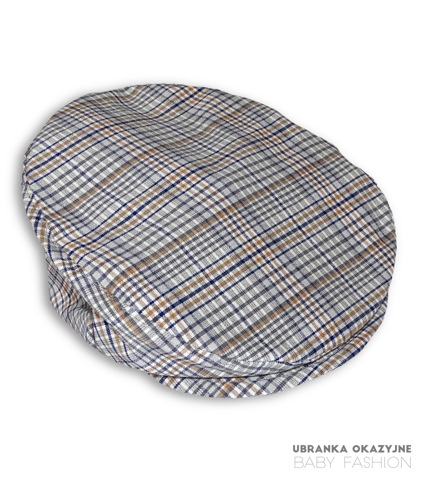 Ten uroczy kaszkiet jest idealnym dodatkiem do stroju Twojego dziecka na chrzest lub inne specjalne okazje. Wykonany z miękkiej, przewiewnej tkaniny w beżową kratkę, zapewnia komfort i styl.