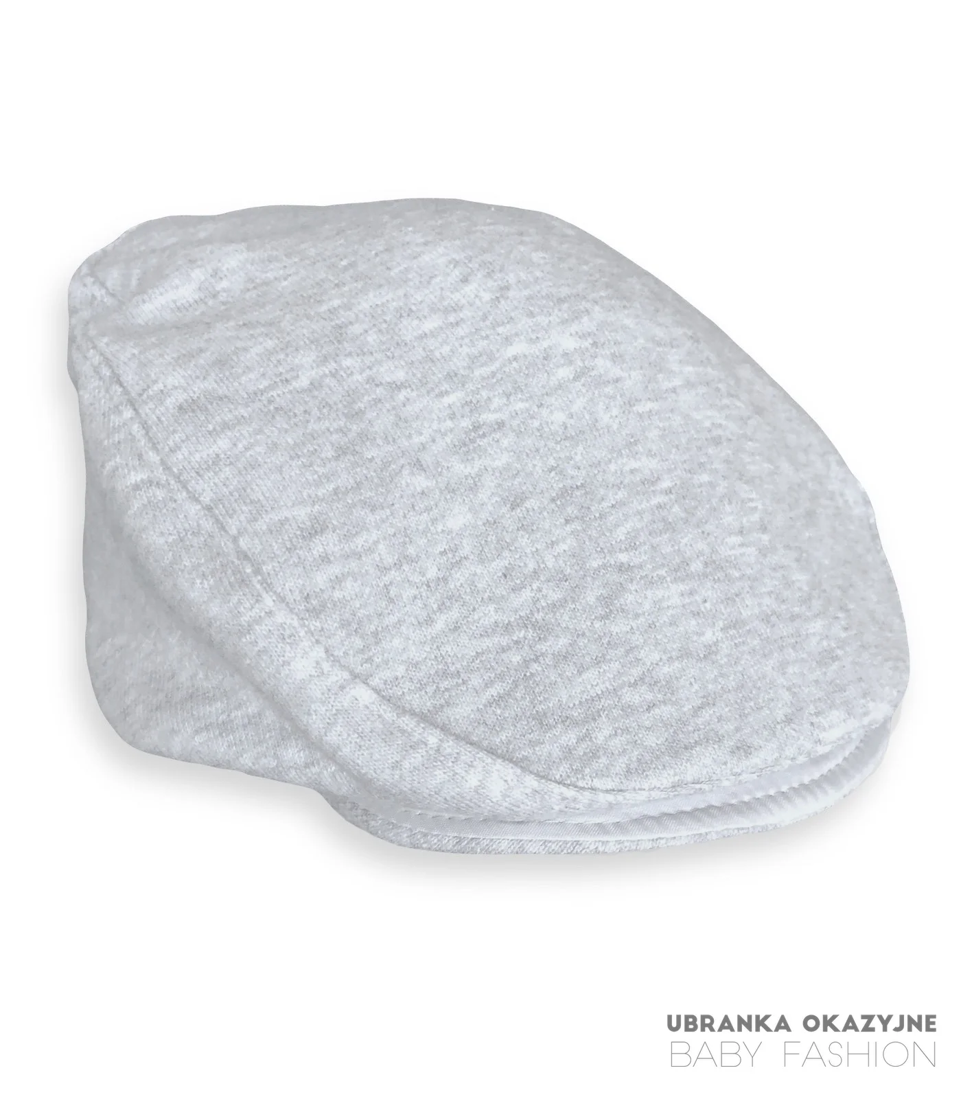Zamów już dziś nasz bawełniany kaszkiet dla dziecka w kolorze szary melanż i stwórz wyjątkową stylizację na chrzest lub inne ważne okazje!