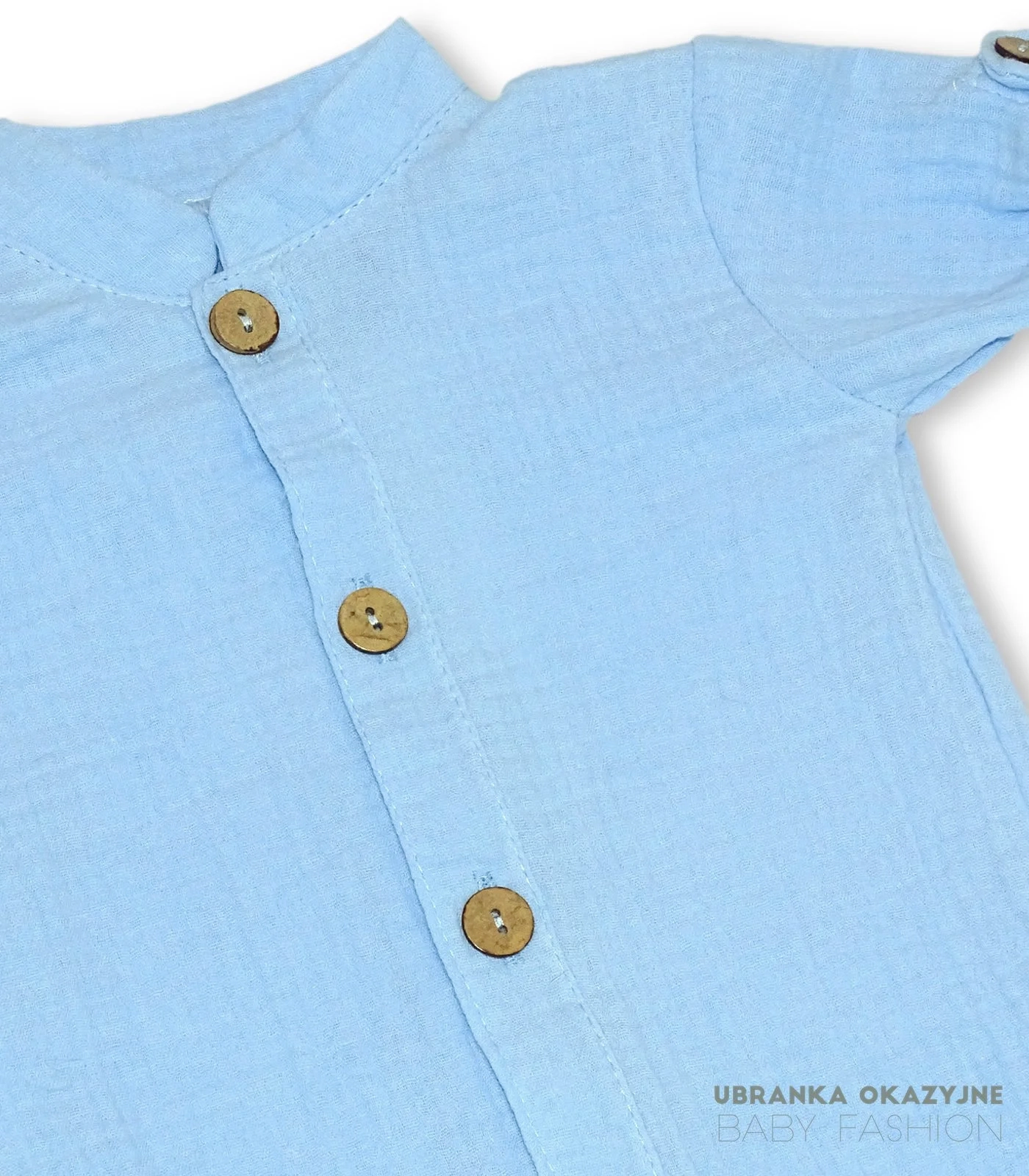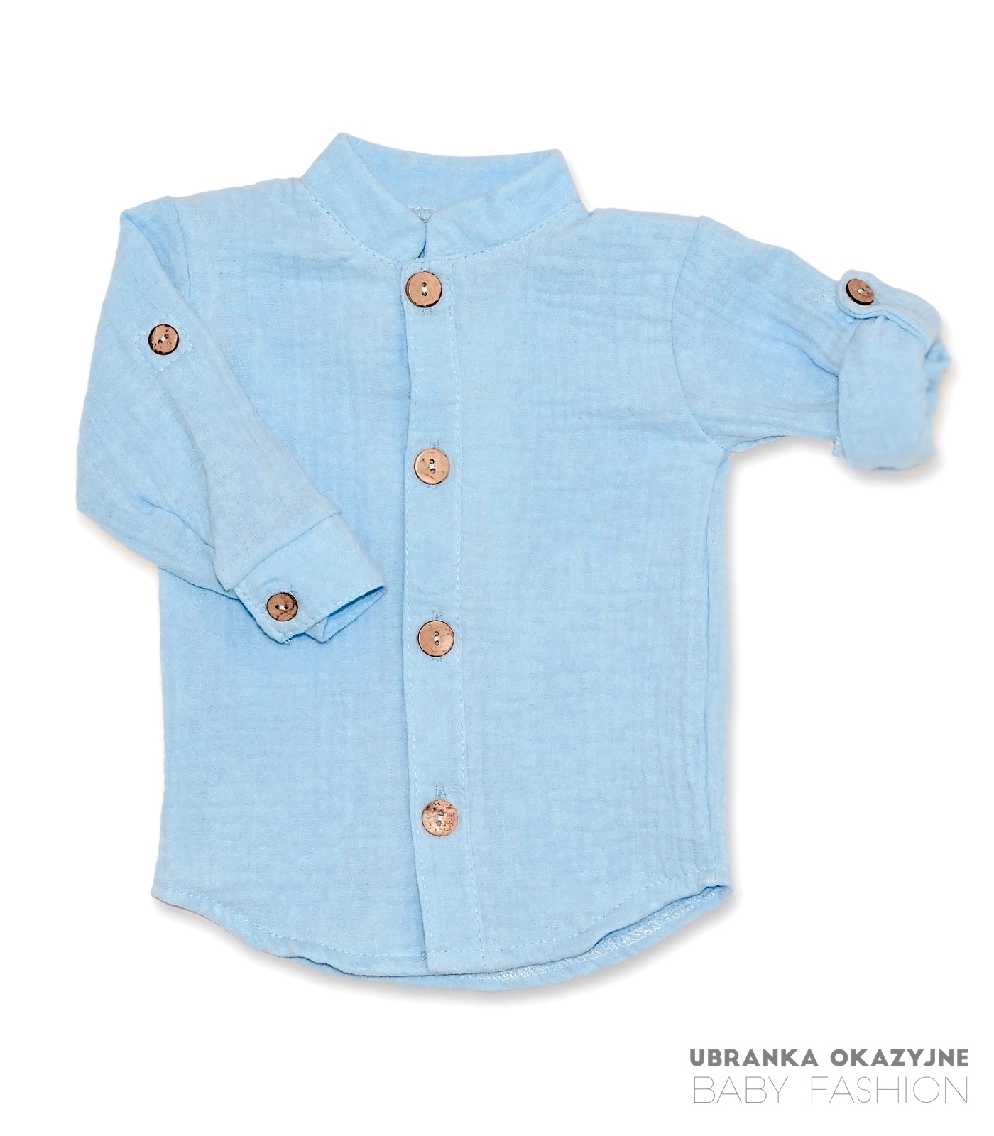 Błękitna koszula muślinowa dla chłopca – długi rękaw