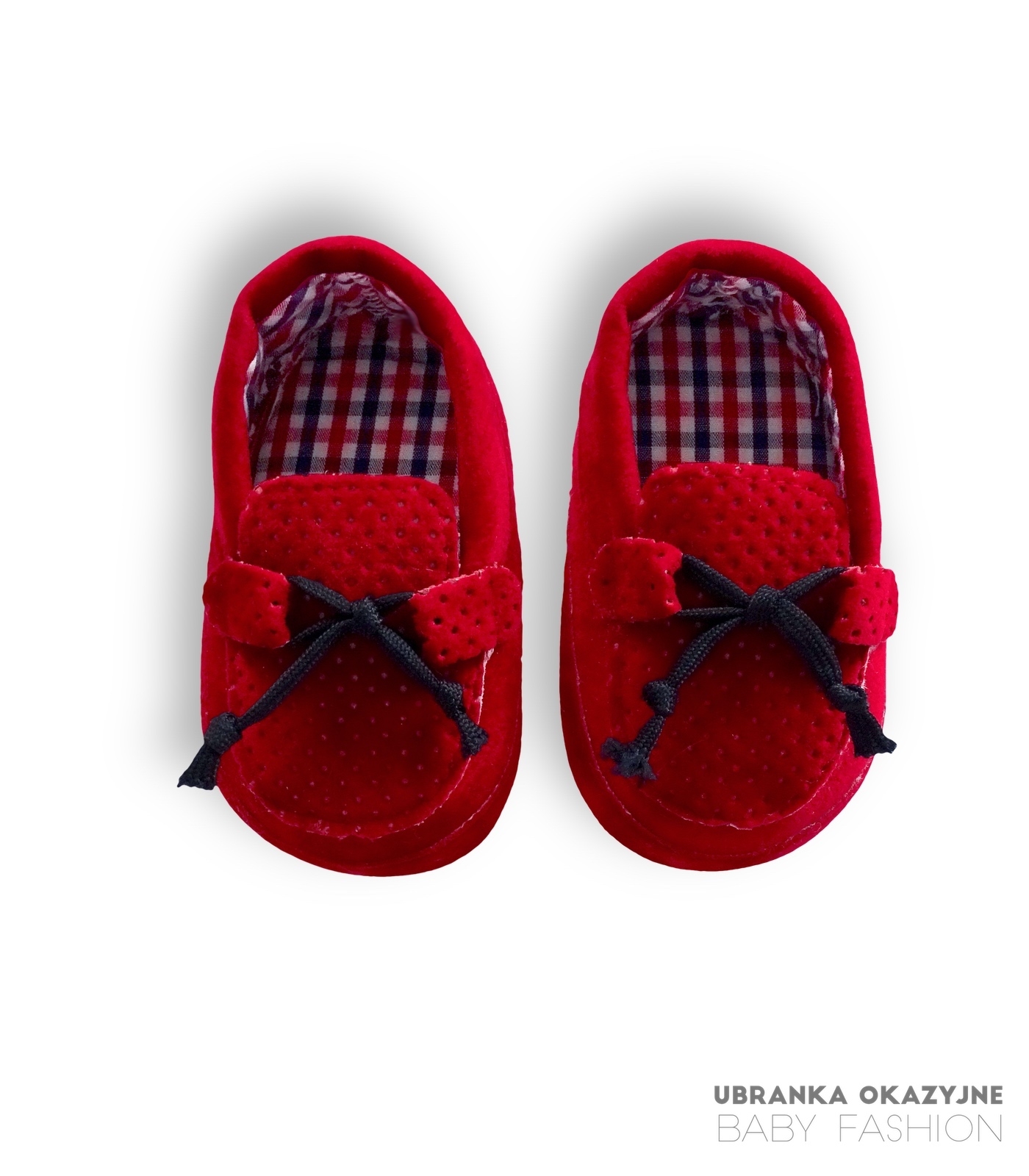 Czerwone zamszowe mokasyny niechodki dla maluszka