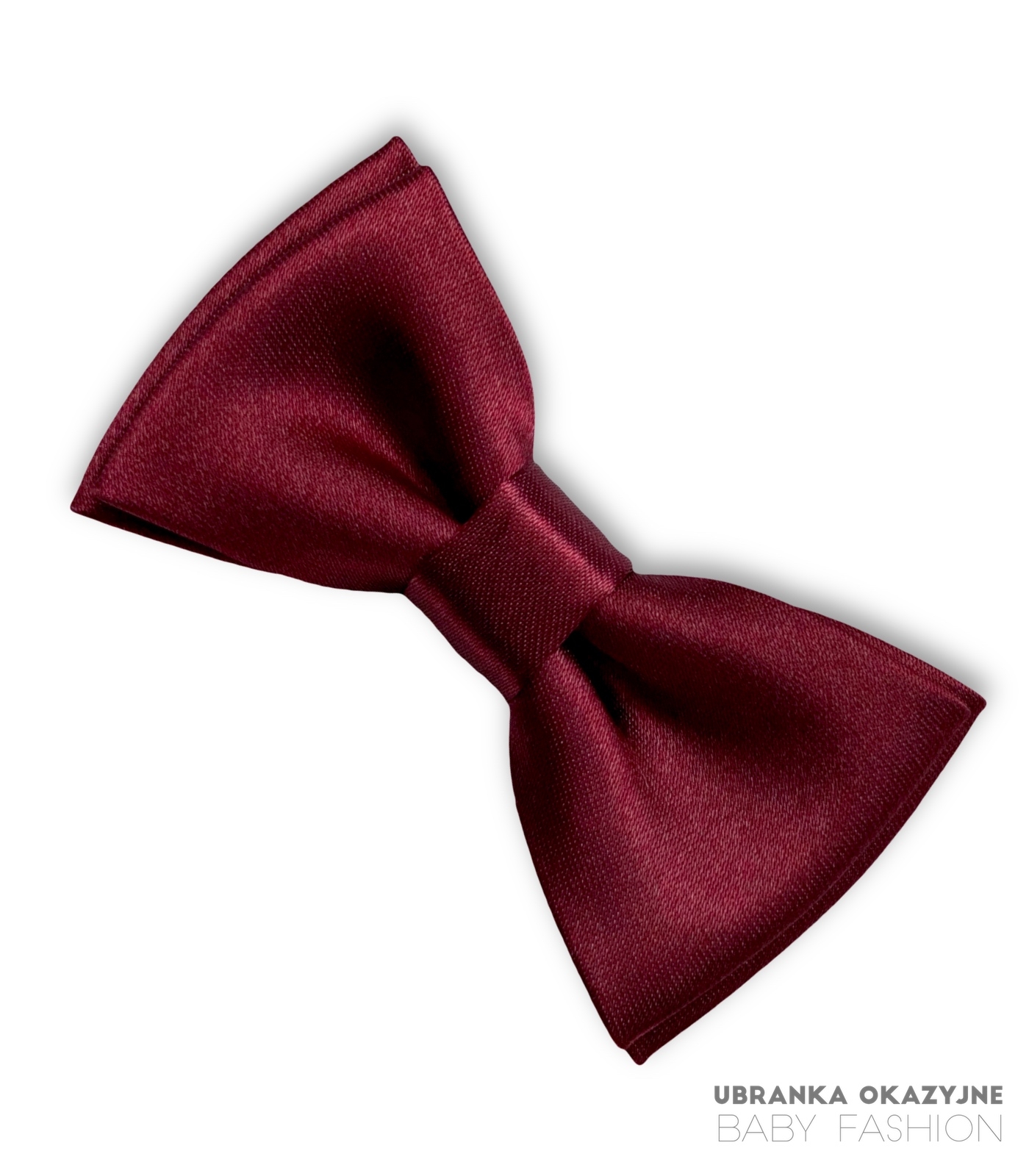 Bordowa satynowa muszka dla niemowląt i małych dzieci, w wieku od 0 do 3 lat. Muszka posiada regulowaną tasiemkę, dzięki czemu idealnie dopasuje się do szyi dziecka. Jest to doskonały dodatek do eleganckiego ubranka na chrzest lub inne specjalne okazje. Produkt polskiego producenta, wykonany z wysokiej jakości materiałów, miękkich i wygodnych dla skóry dziecka.