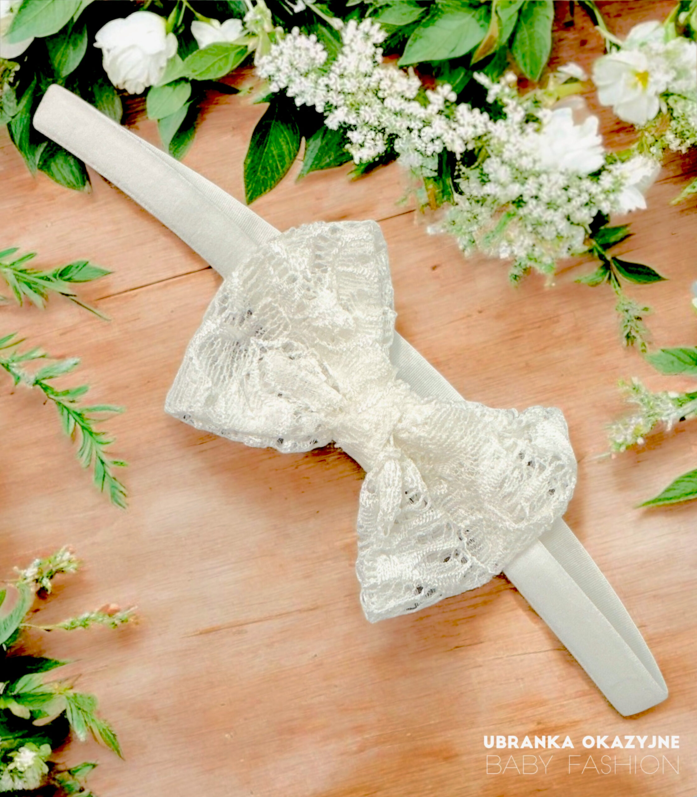Elegancka opaska do chrztu dla małej dziewczynki