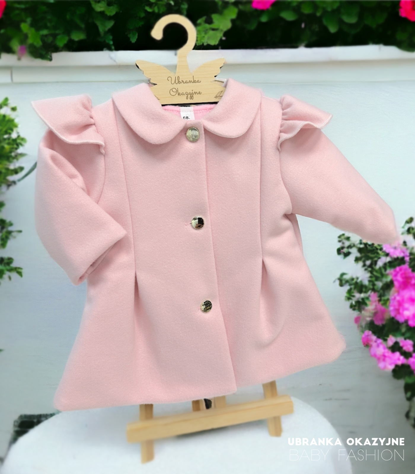 Przedstawiamy elegancki różowy płaszczyk, który z pewnością przyciągnie uwagę wszystkich swoim urokiem i wyrafinowanym stylem. Wykonany z najwyższej jakości, miękkiego flauszu, ten płaszczyk jest nie tylko elegancki, ale także wyjątkowo przyjemny w dotyku, zapewniając Twojemu dziecku maksymalny komfort. Nasza polska marka kładzie nacisk na najdrobniejsze detale, co widać w każdym elemencie tego płaszczyka. Złote metalowe guziczki dodają mu subtelności i klasy, a uroczy kołnierzyk nadaje mu delikatnego uroku. Dostępne w rozmiarach – 62, 68 , 74 , 80 , 86. Ten elegancki płaszczyk to nie tylko doskonały wybór na uroczyste okazje, ale także praktyczny dodatek do codziennej garderoby. Daj swojej małej księżniczce możliwość poczucia się wyjątkowo w tym wyjątkowym płaszczu.
