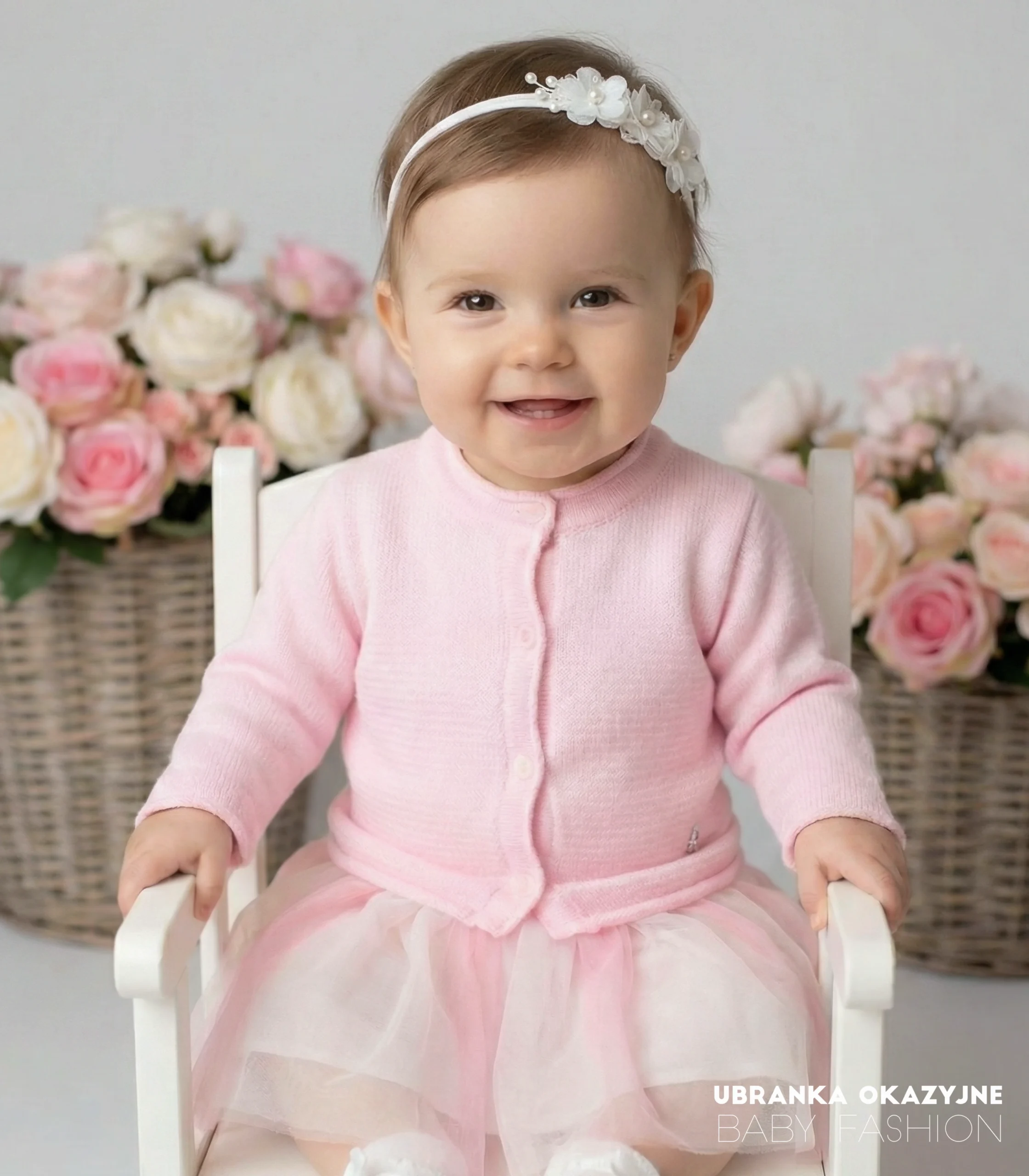 Zadbaj o ciepło i styl swojej córeczki. Zamów teraz ten uroczy różowy sweterek i stwórz niezapomnianą stylizację na Chrzest lub sesję zdjęciową!