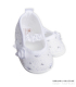 Białe balerinki z białą różyczką i perełką dla Niemowląt na Chrzciny.
