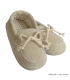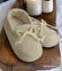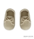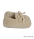 Mokasyny niechodki dla niemowląt w kolorze beżowym.