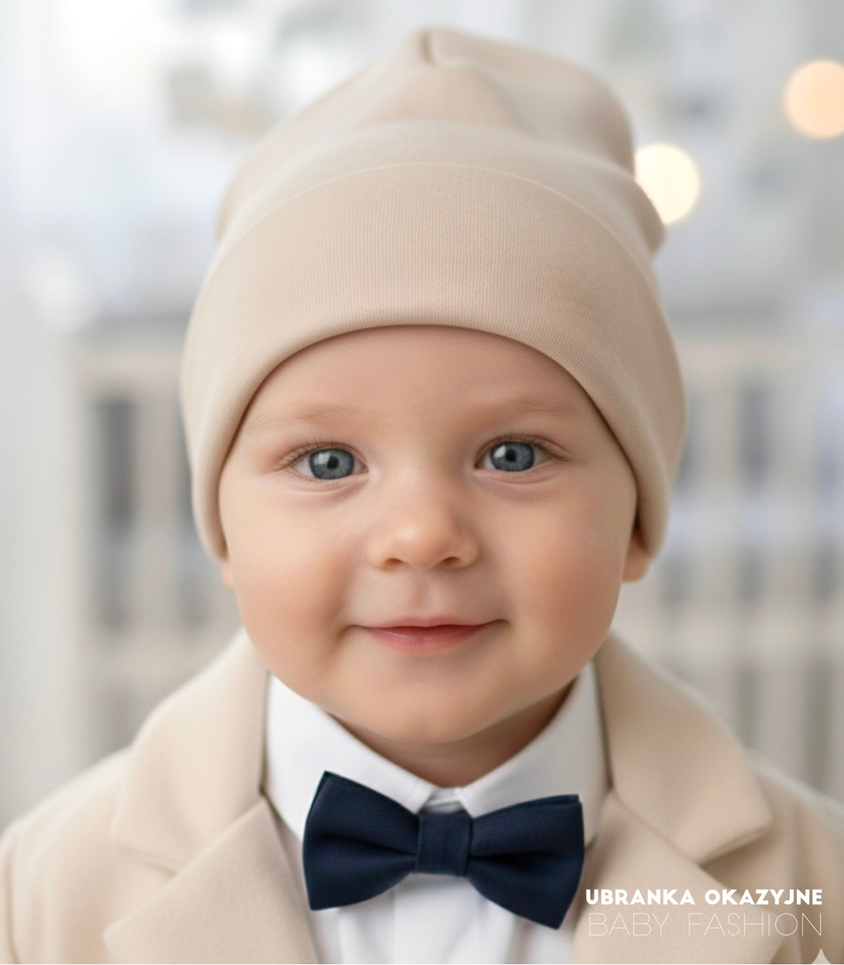 Uroczy dodatek do stylizacji Twojego dziecka - beżowa czapeczka typu smerfetka