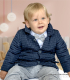 Granatowa kurtka w formie płaszczyka z kołnierzykiem, zapinana na 3 granatowe guziczki z pikowanego ortalionu. Idealna kurtka na uroczyste okazje, takie jak ceremonia chrztu.