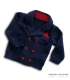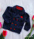 Odkryj nasz elegancki granatowy sweterek dwurzędowy dla małego dziecka, wykończony czerwonymi guziczkami. Dostępne rozmiary: 62, 68, 74, 80, 86. Wyprodukowany w Polsce. Zapewnij swojemu dziecku styl i komfort już dziś!