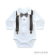 Odkryj nasze urocze ubranko do chrztu dla niemowlaka! Zestaw składa się z białego bawełnianego body z długim rękawem, zapinanego na dwa guziczki, które dodają elegancji i wygody. W komplecie znajdziesz również szarą muchę we wzorki, wiązaną na tasiemkę, oraz szare szelki, które nadają uroku całej stylizacji. Spodnie bawełniane w kolorze szarym dopełniają zestaw, zapewniając wygodę i swobodę ruchów maluszka. Wybierz nasze ubranko do chrztu, aby Twój maluszek wyglądał uroczo i czuł się komfortowo podczas tej wyjątkowej okazji!