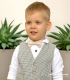 Kamizelka w zieloną pepitkę oraz muszka z tej samej tkaniny co spodnie nadają całości eleganckiego charakteru.